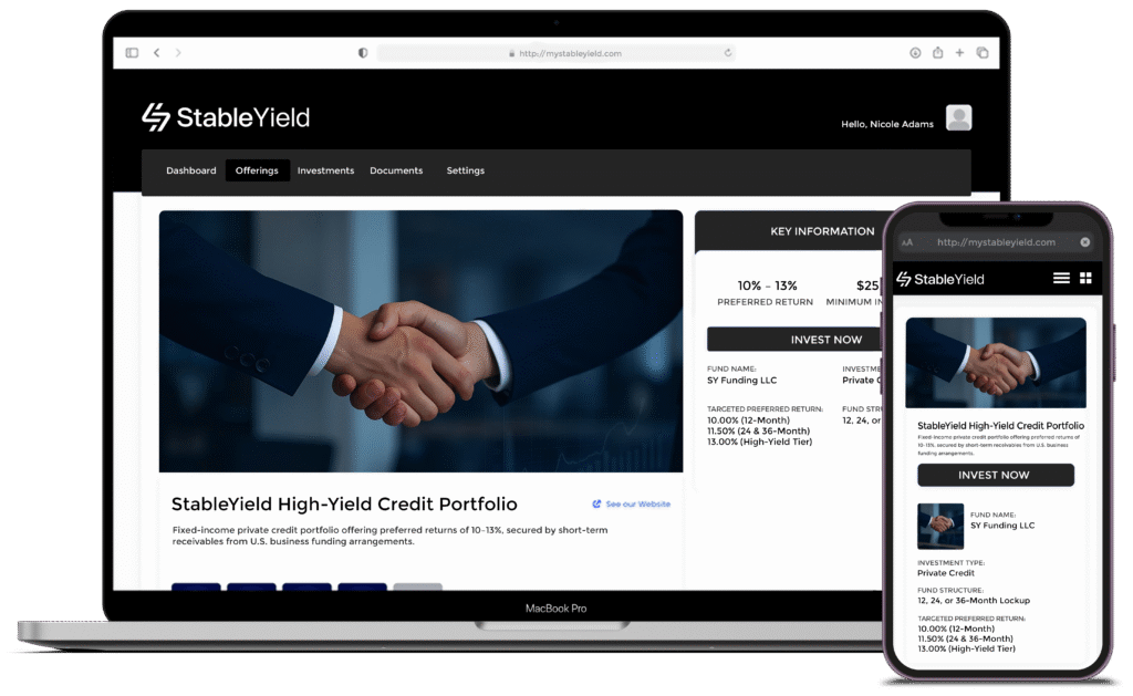 StableYield offers accredited investors access to institutional-grade private credit strategies with fixed yields and transparent terms.